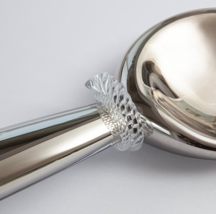 Chris Bird-Jones has produced a series of spoon-like forms, both symbolic and sensuous. Interacting with these pieces requires care; to be considered and secure, cradled in one’s arms like a newborn child. One slip and all would be lost, shattered, mirroring the fragility of our human condition, of a life in balance.
