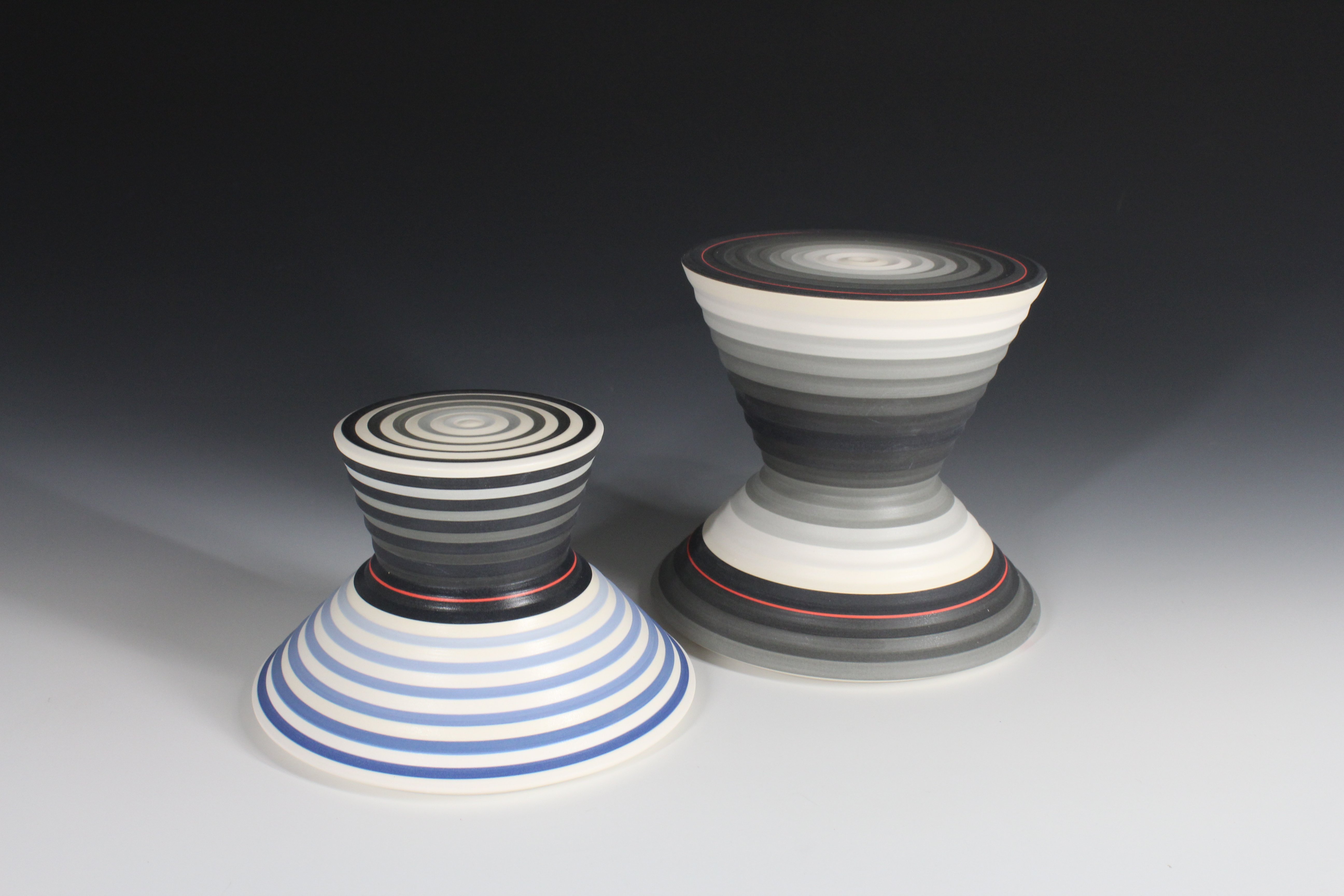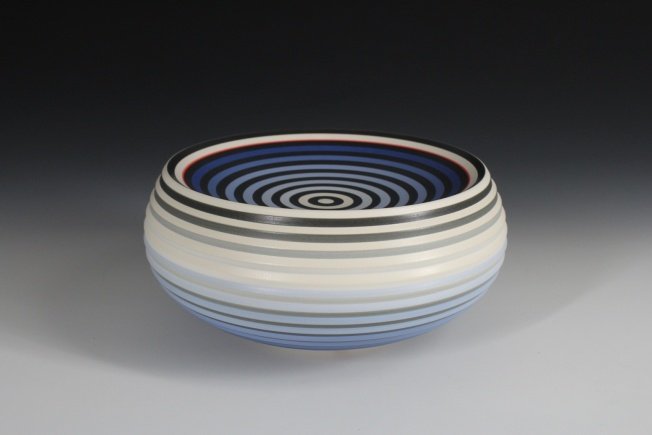 Jin Eui Kim works in-between the concepts of illusion and reality. His work attracts viewers by visual phenomena as well as physical confusions appearing on the surface of the ceramic. Restricting or removing data (information) on the surface increases the chance of the viewer’s perception shifting between illusion and reality. Looking with half closed eyes, in the darker light and with distance, brings the illusion to life for Jin.